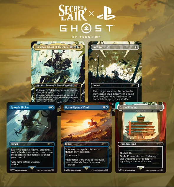 La storia del viaggio di Jin Sakai per diventare lo Spettro di Tsushima ha colpito i fan nel 2020. Il suo viaggio è stato un viaggio alla scoperta di sé, di tragedia e di redenzione. Mentre i fan si preparano per il prossimo, attesissimo Ghost of Yotei, Secret Lair è orgoglioso di portare i personaggi e i concetti di Ghost of Tsushima in Magic: The Gathering con questo drop.